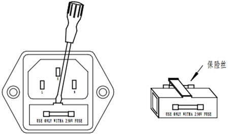 警告:1、為了避免觸電事故的發生,在更換保險絲之前請把儀器上的電源插頭拔掉,確保儀器上無電源電壓。