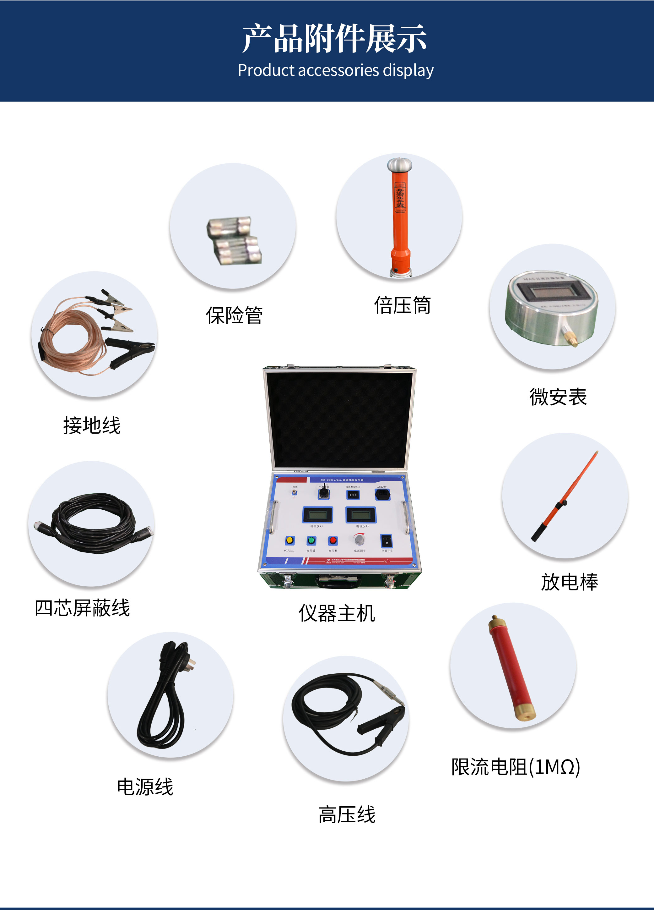 (1)精度高、測量準確。控制箱上電壓表直接顯示加在負載試品上的電壓值,使用時無需外加分壓器,接線簡單。儀器具有高、低壓端測量泄漏電流,高壓端采用圓形屏蔽數字表顯示,不怕放電沖擊,抗干擾性能好,適合現場使用。
