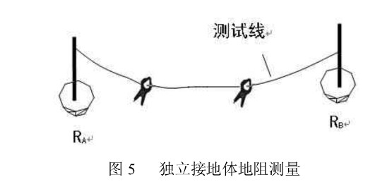 c、機(jī)房處于較高樓層時(shí),(二層以上),可采用“獨(dú)立接地體”測(cè)試方法此種方法是基于將自來(lái)水管網(wǎng)的接地電阻理論上認(rèn)為是零歐姆,但實(shí)際上是有電阻值的,此時(shí)測(cè)試分為二步:第一步,按“獨(dú)立接地體”測(cè)試方法測(cè)出 RA;第二步,單獨(dú)在一樓將自來(lái)水管的接地電阻按“地樁”測(cè)試方法測(cè)出 Rg(此時(shí)自來(lái)水管看作獨(dú)立接地體),(RA-RB)即為機(jī)房接地裝置的實(shí)際接地電阻。