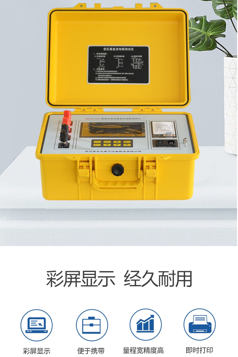 為了滿足感性線圈直流電阻快速測量的需要,武漢市合眾電氣利用自身技術優勢研制了直流電阻測試儀。采用全新電源技術, 具有體積小、重量輕、測試量程寬、抗干擾能力強、保護功能完善、大屏彩色液晶顯示等特點。整機由單片機控制,自動完成自檢、數據處理,具有自動放電和放電指示功能。儀器測試精度高,操作簡便,可實現直阻的快速測量。