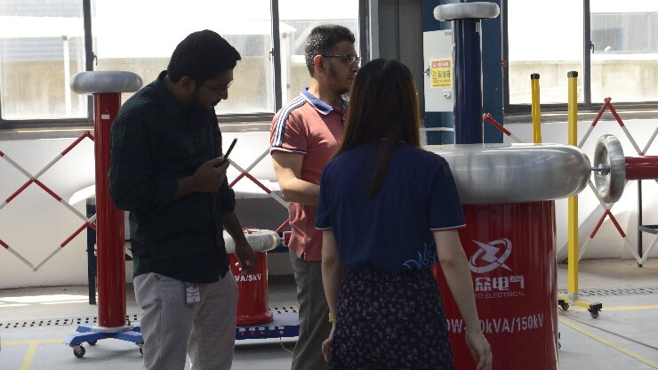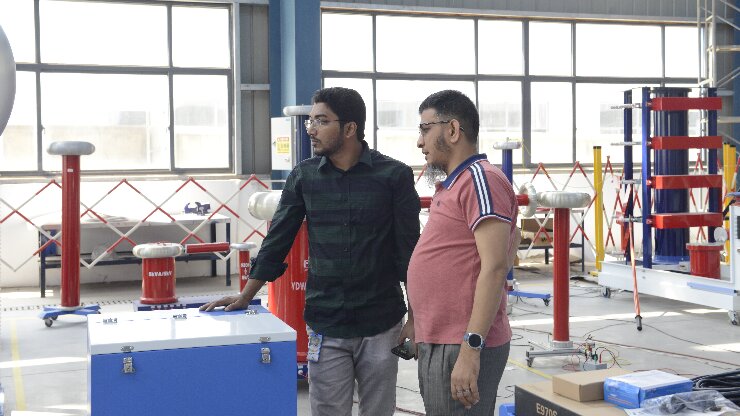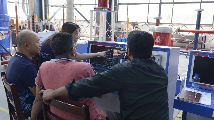 在武漢市合眾電氣技術團隊的陪同下,孟加拉客戶深入?yún)⒂^了智能化生產(chǎn)車間與高壓實驗室。客戶重點觀摩了局部放電測試系統(tǒng)的現(xiàn)場演示,對其高精度檢測能力與抗干擾性能表示認可;在沖擊電壓發(fā)生器測試區(qū),設備穩(wěn)定的波形輸出與模塊化設計引發(fā)了客戶濃厚興趣。客戶現(xiàn)場表示:"合眾電氣的全流程質量控制體系與國際標準接軌,完全符合孟加拉電網(wǎng)試驗項目的嚴苛要求。"