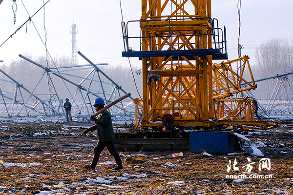 為了確保工程順利進行,工作人員雪后復工